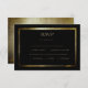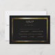 Black & Metallic Gold Wedding RSVP Response Card. Dinner Options.