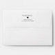 Enveloppe blanche simple avec adresse de retour dans une police serif noire moderne sur le rabat arrière. Parfait pour les événements formels et informels.