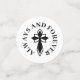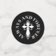Elegant wedding table confetti in a black and white design with confetti in three sizes, the small ones printed with always and forever in a curved text around a cross. The middle ones are printed with a cross monogram with two initials and your wedding date. The big ones are printed with photos of the happy couple, perhaps from their save the date photoshoot. Perfect for both wedding receptions and engagement dinners. Christian cross-themed wedding table confetti personalized with monogram and photos.