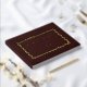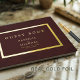Simple minimal design gold foil stylish bride and groom names personalized vintage antique looking dark burgundy classy luxury guest book.