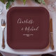 Elegant Deep Burgundy Script Minimalist Wedding Paper Plate