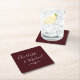 Elegant Deep Burgundy Script Minimalist Wedding Square Paper Coaster