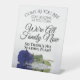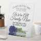 This beautiful self-standing pedestal sign will let your guests know that there is no seating plan so they can sit wherever they like. It features a simple yet elegant design with a single long-stemmed navy blue coloured rose reflecting in a pool of water. Text reads: Come as you are, stay as long as you can, We're family now, so there's no seating plan. Perfect way to invite your guests to mingle and meet each other.