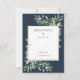 Elegant Deep Sea Blue Greenery Leaves Wedding RSVP Card