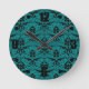 Elegant Deep Teal Black Damask Pattern Round Clock