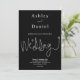 This elegant black and white wedding invitation is perfect for a modern wedding. the simple design features elegant white calligraphy on a black background.