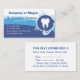 Elegant and classy Dentist appointment reminder business cards with tooth logo , text you can customise and two sided design card, blue shade with water splash on white background. You can easily use as both , business and appointment reminder card in one. This cute card designs for a dentist, dental practice, dental office, orthodontist or oral surgeon.