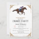 Celebrate race day in timeless style with this elegant derby party invitation featuring a classic horse racing design and refined gold accents. Perfect for Kentucky Derby watch parties, cocktail gatherings, and upscale celebrations. Easily customize with your names, date, time, and location to create a polished and memorable invitation for your guests.