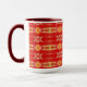 Barn red with a yellow floral patterned print. The barn red background can be switched to any colour. Text can be added to personalize even more.