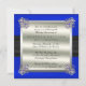 Brilliantly sophisticated and stylish Fifth Wedding Anniversary faux sapphire blue satin look background and black satin ribbon with diamonds and sapphires in a gated style that is continued on back. The back has a silver and pearlescent faux card overlay mounted in the corners with the sapphire and diamond clasps. Original design by Holiday Hearts Designs (all rights reserved).