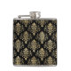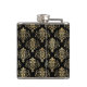 Elegant Distressed Gold Damask Pattern on Black Hip Flask