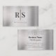 Elegant DIY Blk Monogram Grey Name, Brushed Silver Business Card