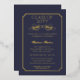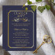 A simple yet elegant scroll and scalloped frame real gold foil and dark blue graduation party invitation design that can be personalized for high school, college or university graduations. Design by Holiday Hearts Designs (all rights reserved).