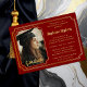 Elegant dark red graduation party invitation featuring a refined scalloped photo panel on the left and personalized event details on the right, all framed by a genuine gold foil double scalloped-edge border. This landscape-oriented foil invitation offers a timeless, sophisticated look ideal for celebrating high school, college, or university graduates. Fully customizable with the graduate’s photo, name, degree, date, and event details, this polished design creates a memorable keepsake for honoring an important milestone. Composite design by Holiday Hearts Designs (rights reserved).