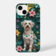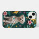 Elegant Dog with Tropical Flowers and Gemstone iPhone Case