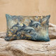 Elegant Dolphins with Golden Floral Waves Lumbar Pillow