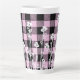 Elegant doodle black pink floral plaid pattern latte mug