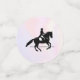 Table confetti with a black and white illustration of a dressage rider. The horse and rider are performing a pirouette. Classy and beautiful. Set on a watercolor background in delicate and muted pastel colours.