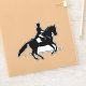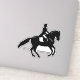 A vinyl decal with a black and white illustration of a dressage rider in formal attire. The horse and rider are performing a beautiful pirouette. An elegant classic dressage movement.