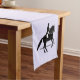 Table runner with a black and white illustration of a dressage rider in formal attire. The horse and rider are performing a beautiful pirouette. An elegant classic dressage movement.