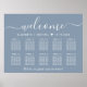 Elégant téléchargeable, un poster de mariage bleu poussiéreux pour 10 tables maximum avec "bienvenue" dans un script blanc chic, vos noms et date de mariage réunis par un coeur et "Nous sommes si heureux que vous soyez ici" dans la typographie classique de serif blanc. Vous pouvez sélectionner l'option de téléchargement numérique à modifier avec des modifications de dernière minute et imprimer localement.