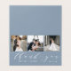 Cet élégant carte de remerciements comprend 3 photos avec "merci" en script de calligraphie avec les noms du couple et la date du mariage.