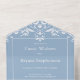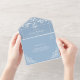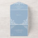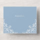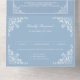 This elegant dusty blue all in one wedding design features refined white floral details and a tear off RSVP card. Perfect for couples seeking a timeless, old money inspired invitation with cohesive style and convenient functionality. Create an invitation as timeless as your love with these elegant dusty blue and white all in one wedding Invitations that exude the perfect combination of simple elegant design with a coastal chic and old money aesthetics. This versatile design is perfect for the couple that is creating a romantic theme with a classic combination of script and typography and a slightly retro vintage graphic element. Designed by Simple Desert Designs Studio. Message us for more customized colours to perfectly match your wedding theme.
