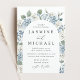 Elegant Dusty Blue Arch Floral Frame Wedding Invitation
