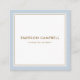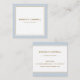 Square, white, professional business cards or personal profile cards with light dusty blue borders. Customizable name and title/company name on the front. On the back are customizable template fields for name, title/company name/specialty and contact information. A minimal and classy design