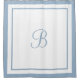 Add classic elegance to your bathroom with this stylish monogrammed shower curtain. This sophisticated white shower curtain is framed with a contemporary hotel chic layered border design. Personalize the script monogram letter with your first or last name initial. Dusty blue / chambray and white colour scheme. Please shop our store for additional colour options.