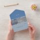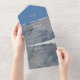 This all in one wedding invitation card is special. You get your changeable invitation card and the RSVP card all in one. You can customize the simple and minimal wedding invitation card with your monogram, intro, names, occasion, date, adress, rsvp, meals and other background colours and fonts to your preferations. You can even change the image or put a photo on it. It shows a harmonious blends of dusty blue tones and it has fitting white typography. The design itself shows a coastal ocean marble design. It is a changeable photo or image design. You can elegant seal and send this trifolded budget wedding invitation. Send the tear off RSVP Postcard back to the sender. Make this special design yours and feel this personalized design for your future wedding. Hobinishop
