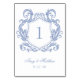 These elegant dusty blue crest wedding table number cards are perfect for your wedding reception! The crest is elegant and romantic. Put them on every table at your venue so guests can find the table they have been assigned for the party. It is so easy to make these cards your own. Simply select Personalize this template and type in your information and the table number and add to cart. Repeat for how every many tables you will be having at your reception.