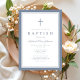 Elegant Dusty Blue Cross Baby Boy Baptism Invitation