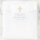 Personalized Elegant Dusty Blue Cross Boy First Communion Square Sticker. Part of the Dusty Blue Script Cross Boy First Communion Suite with matching invitation, stationery and first communion party accessories.