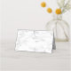 Create the perfect reception setting, using this trendy, elegant place card, featuring light dusty blue eucalyptus greenery botanical elements, a dusty blue frame and faux Carrera marble background. Part of a wedding invitation suite. Copyright Elegant Invites, all rights reserved.