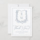 Elegant Dusty Blue Floral Crest Monogram Wedding Thank You Card