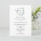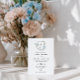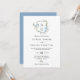 Delicate white and dusty blue floral monogram crest wedding invitation.