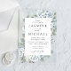 Celebrate your love with our Elegant Dusty Blue Floral wedding invitations, featuring your wedding details framed by delicate dusty blue and white roses, hydrangeas, and lush eucalyptus leaves. Set against a transparent acrylic background, this floral design exudes elegance and charm. Perfect for spring or summer weddings, this dusty blue floral wedding invitation brings a romantic, nature-inspired touch to your special day.