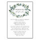Designs features elegant watercolor floral elements in shades of dusty blue, steel, mist and more over a painted greenery wreath. The back features a matching light blue shade. The back also features a bouquet of matching flowers and eucalyptus. You can remove text, add more to the back, or even add a map to add your own personalization. View the collection on this page to find matching items in this design.