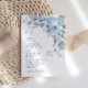Invite friends and family to your wedding ceremony with this elegant invitation, featuring flowers and greenery in dusty blue colours.