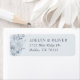 Ajoutez une belle touche de finition à vos mailings mariages avec cette étiquette d'adresse de retour, avec des fleurs bleues encrées sur un arrière - plan bleu poussiéreux.