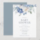Elegant Dusty Blue Floral Winter Baby Shower Invitation