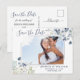 Elegant Dusty Blue Foliage Wedding Save the Date Announcement Postcard.