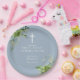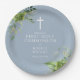 Elegant Dusty Blue Greenery First Holy Communion Paper Plate