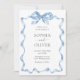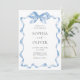 Elegant Dusty Blue Hand Drawn Bow Wedding Invitation