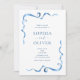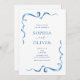 Elegant Dusty Blue Hand Drawn Bow Wedding Invitation