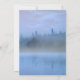 The wedding invitation is an elegant dusty blue minimal nature design. It has trees and mountains and shows watercolor tree and sea shapes.