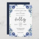 Elegant Dusty Blue Navy Rustic Floral Wedding Invitation