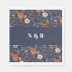 The bride and groom's initials are the central focus of this design. Backed by a dusty navy blue and beautiful French Country watercolor florals. Elegant Dusty Blue Orange Initialled Wedding Napkins