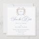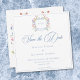 Step into a world of timeless elegance with our exquisite Baroque wildflower wedding save the date card. A regal crest, adorned with your initials, sits at the center of this design, encircled by soft pastel watercolor blooms and a delicate ribbon. A refined dusty blue border encloses your wedding details in sophisticated harmony. Perfect for couples who seek a design that whispers luxury, romance, and the charm of old-world grandeur. Let your wedding begin with a design as breathtaking as the day itself. Created by Simply Farmhouse Press.